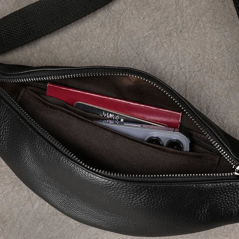 Sac banane en cuir pleine fleur personnalisé sac banane en cuir multi-fermeture à glissière pour hommes sac banane avec oeillets double ligne