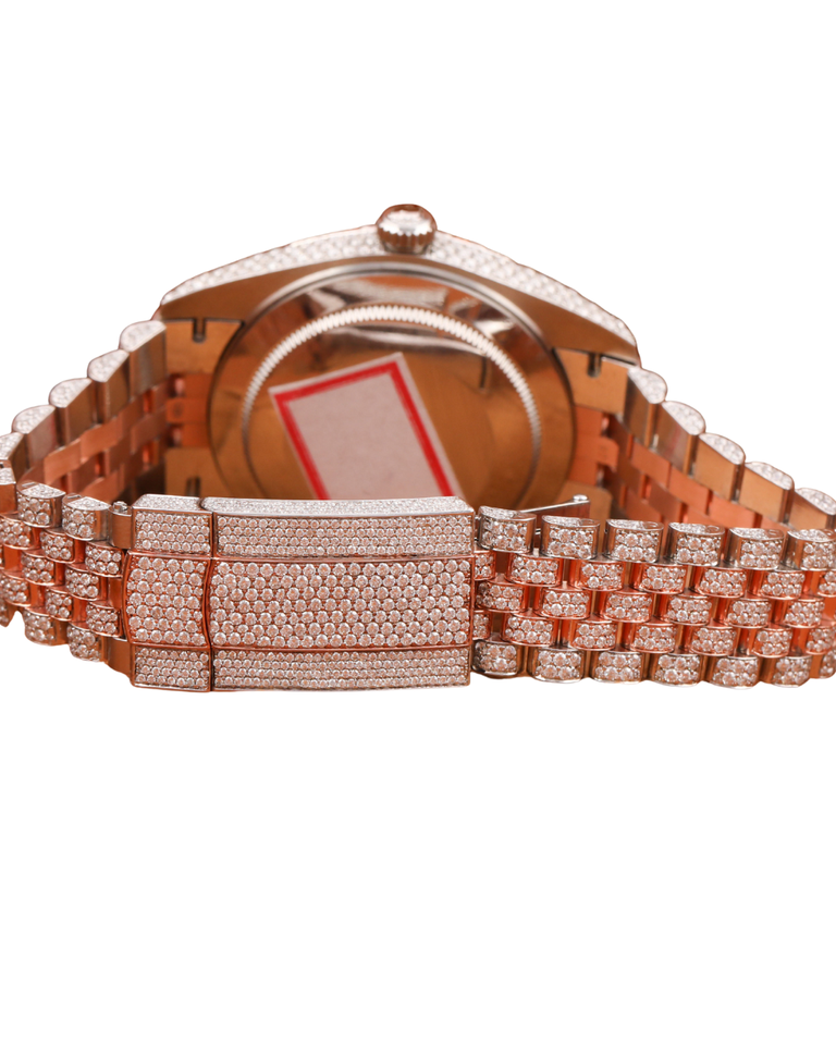Montre-bracelet automatique mécanique personnalisée entièrement sertie de diamants en moissanite marron avec un design bicolore élégant de style hip-hop