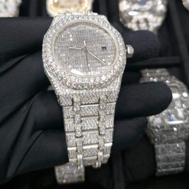 Montre classique pour homme avec cadran Buggute entièrement serti de diamants Moissanite ronds, idéale comme cadeau