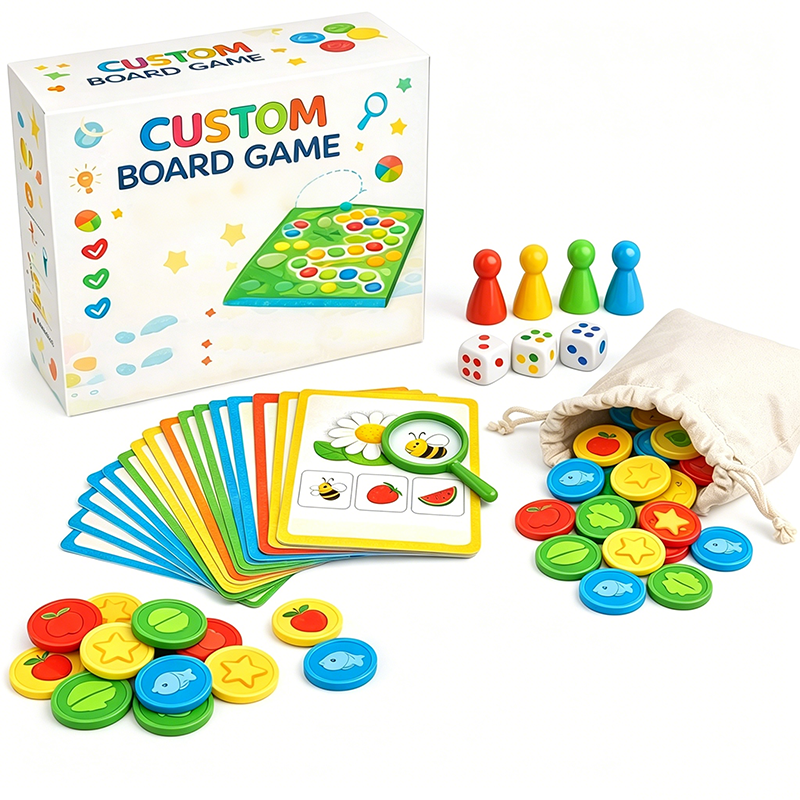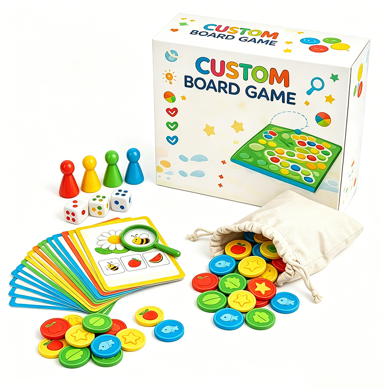Jeu de société personnalisé complet OEM, fabriqué au Vietnam, jeu de cartes éducatif, cartes mémoire, dés pour la famille, les enfants et les voyages, vente en gros