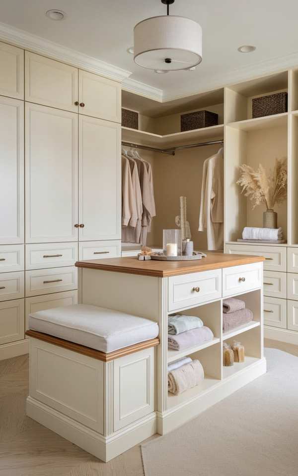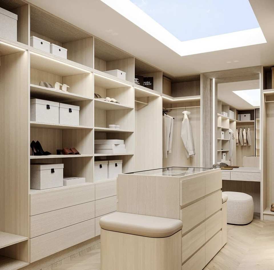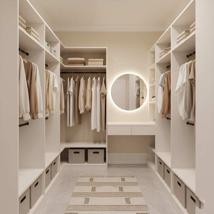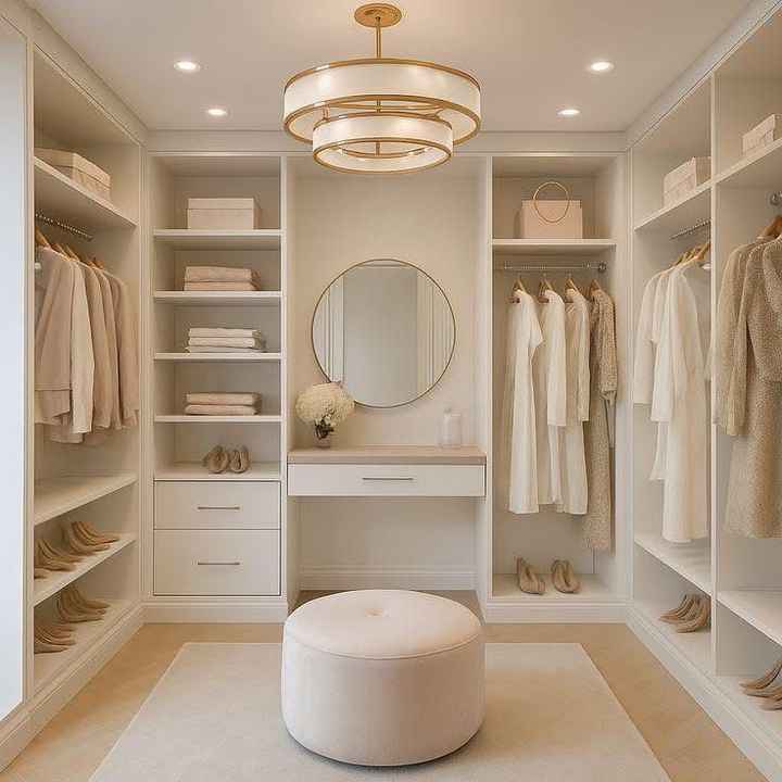 Système de dressing modulable sur mesure en mélaminé avec coiffeuse et étagère à chaussures pour villa