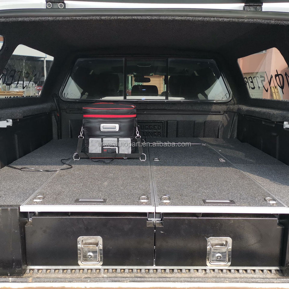 Boîte à outils personnalisée de taille réelle pour camionnette Tiroir de rangement Tiroirs arrière de transport de troupes Système de tiroirs coulissants pour Toyota Tundra