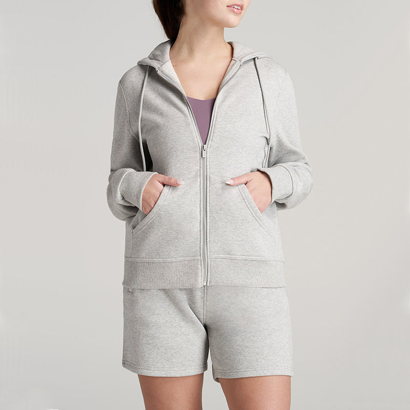 Sweat-shirt à capuche zippé personnalisé ensemble court motif solide Streetwear coton poly mélange polaire éponge française étiquette de Logo personnalisée