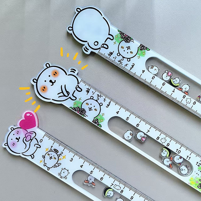 Règle en acrylique de shaker d'image de dessin animé drôle personnalisé outil de conception en plastique promotionnel pour les créateurs de mode
