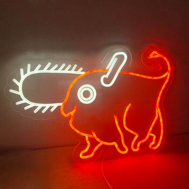Lampe de salle de jeux géante personnalisée amusante avec un chien diabolique, néon LED, dessin animé kawaii, personnage d'anime, art mural, enseigne au néon pour la décoration de la chambre d'enfant, cadeaux