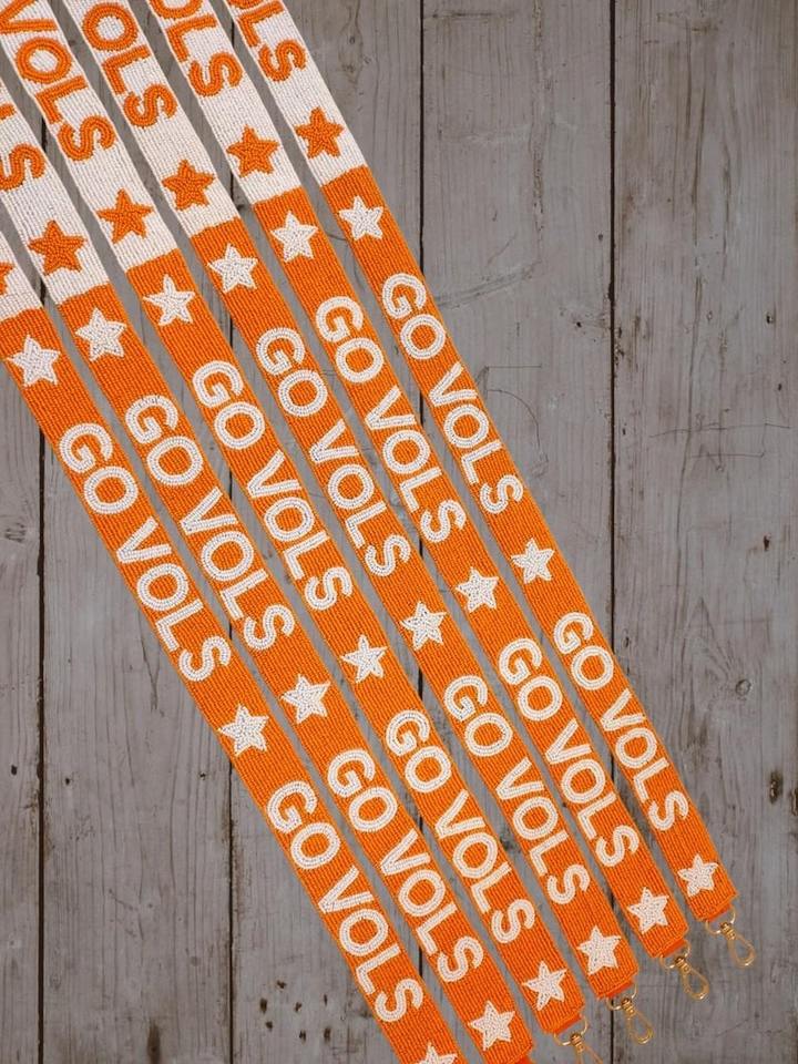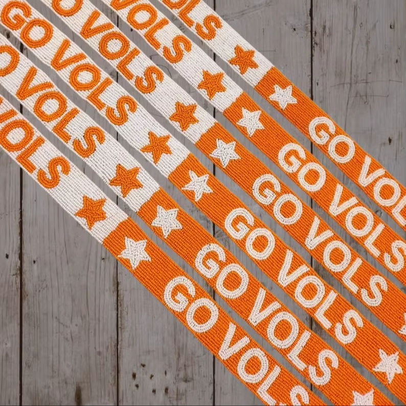 Sangles de sac perlées personnalisées « GO BEARKATS » – Sangles de sac ajustables aux couleurs d'équipe orange et bleu, vente en gros pour l'esprit universitaire