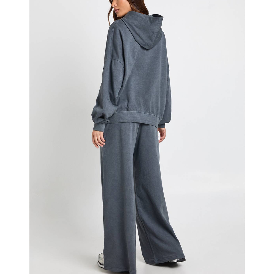 Ensemble de jogging personnalisé en molleton technique vintage, coupe lourde et délavée, avec veste zippée et pantalon de survêtement taille mi-haute à épaules tombantes