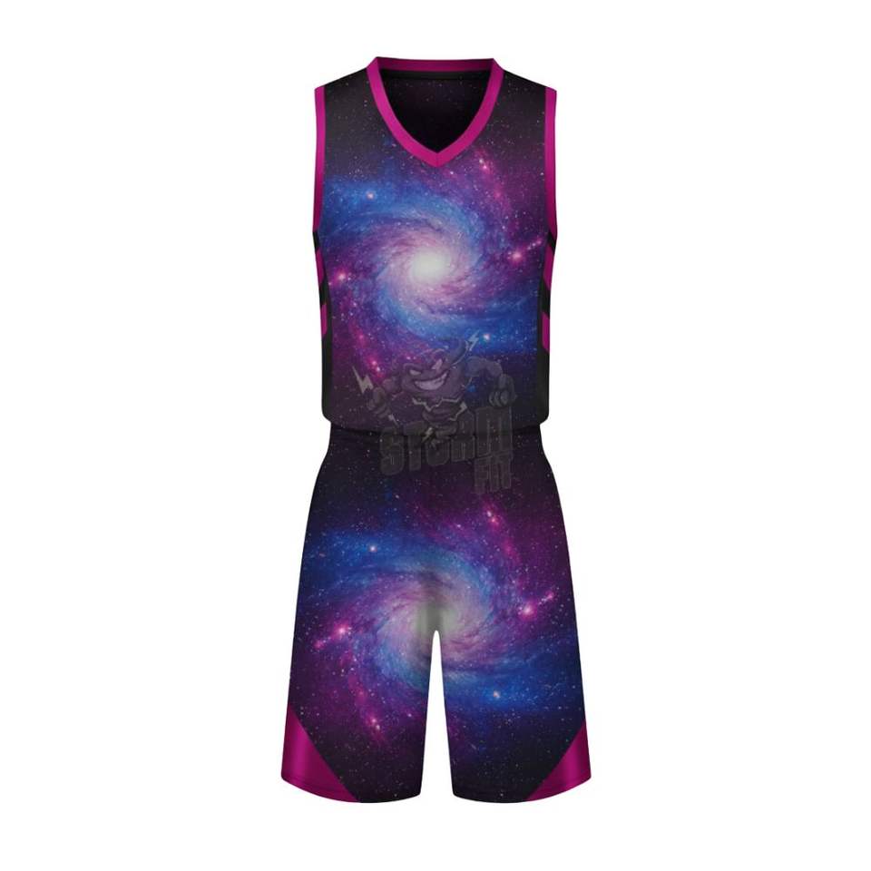 Ensemble de maillots de basket-ball personnalisés avec impression spirale galactique, impression par transfert thermique, maille en polyester respirante de qualité supérieure, pour hommes et jeunes