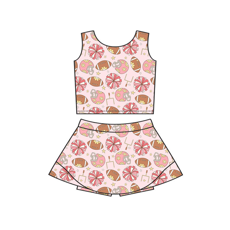 Tenues de sport personnalisées pour petites filles, style baseball, avec haut court, jupe et short, vêtements pour sœurs, en tissu peigné