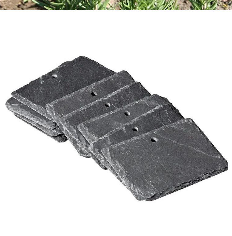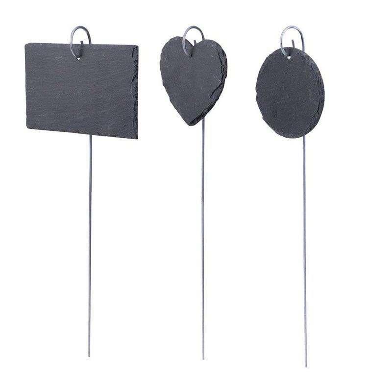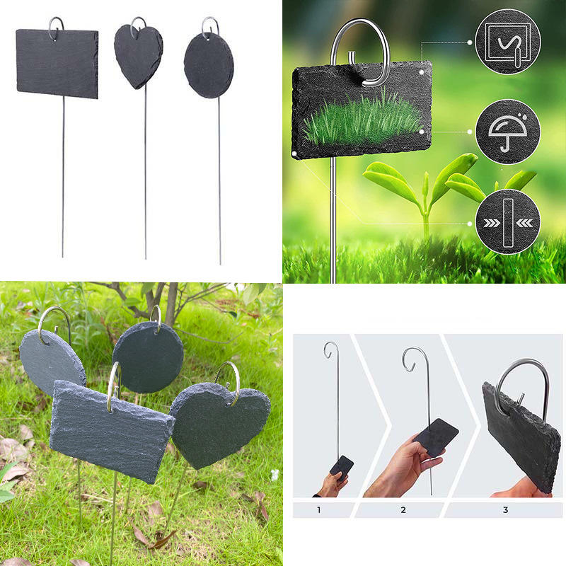 Fleur de jardin personnalisée Marqueurs de jardin en pierre d'ardoise décoratifs Étiquettes de plante en ardoise de style naturel avec piquet suspendu en acier inoxydable