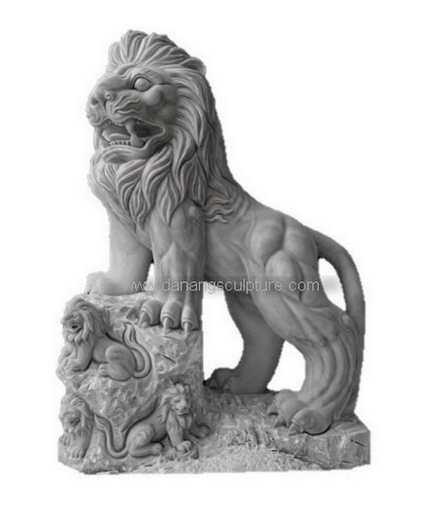 Lion en marbre naturel sculpté à la main de jardin personnalisé avec bébés statues de lion statue de lion en pierre extérieure