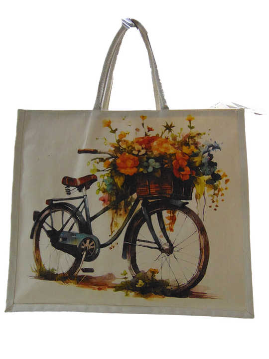 aj- digital print canvas bag cycle with flower
