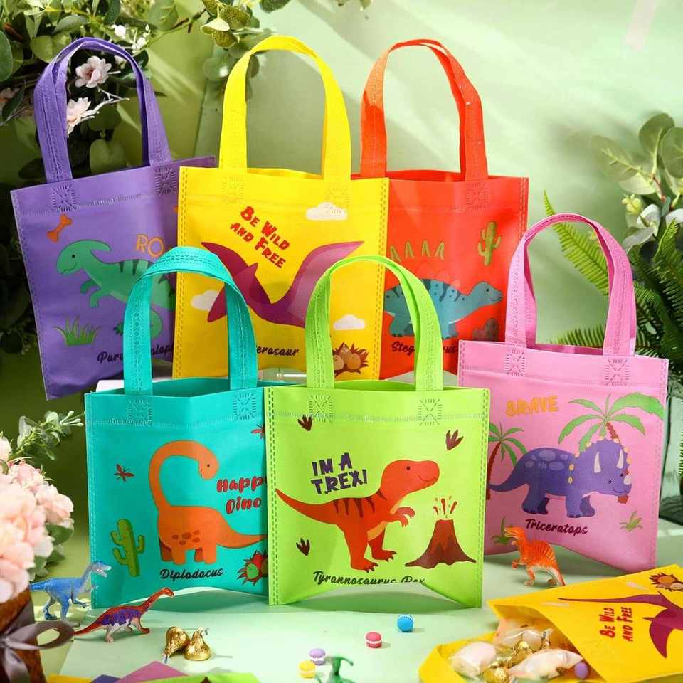 Sacs non tissés personnalisables pour cadeaux, bonbons, décorations d'anniversaire dinosaures, pour filles, garçons, enfants, écologiques, avec logo imprimable