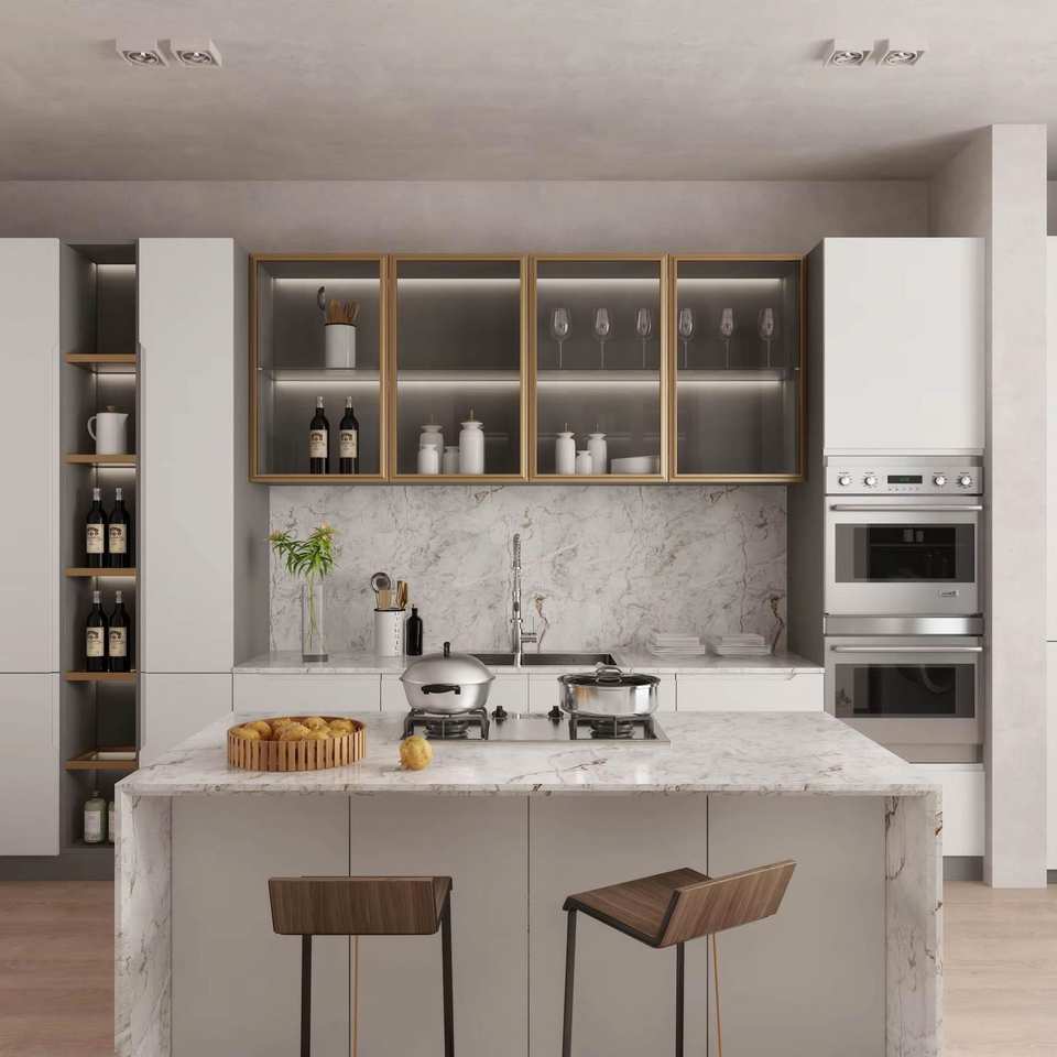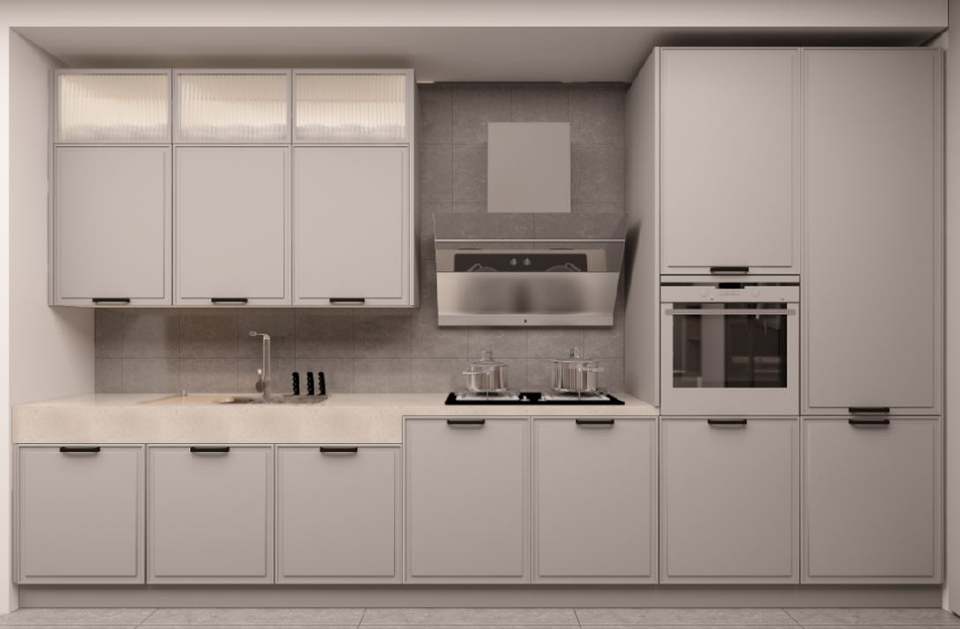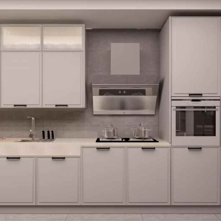 Armoire de cuisine moderne multifonctionnelle en verre personnalisé, porte en PET, mélamine, pin, meubles de cuisine complets, îlot de cuisine pour usage domestique