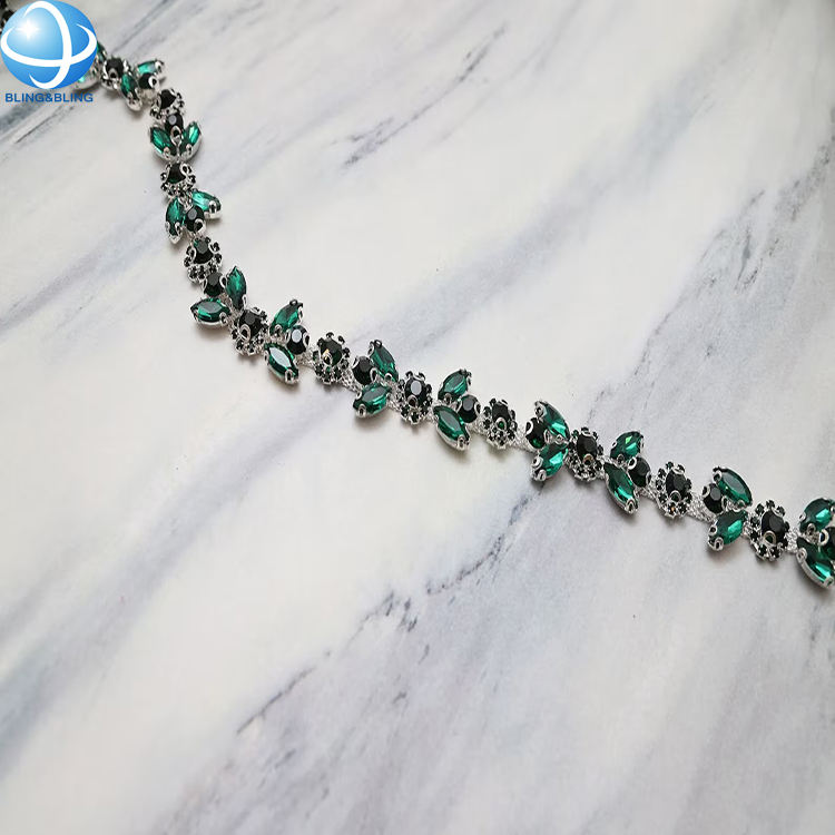 Chaîne de garniture en dentelle strass brillant personnalisé sur rouleau pierres perlées de verre frange coupe robe de danse col décor