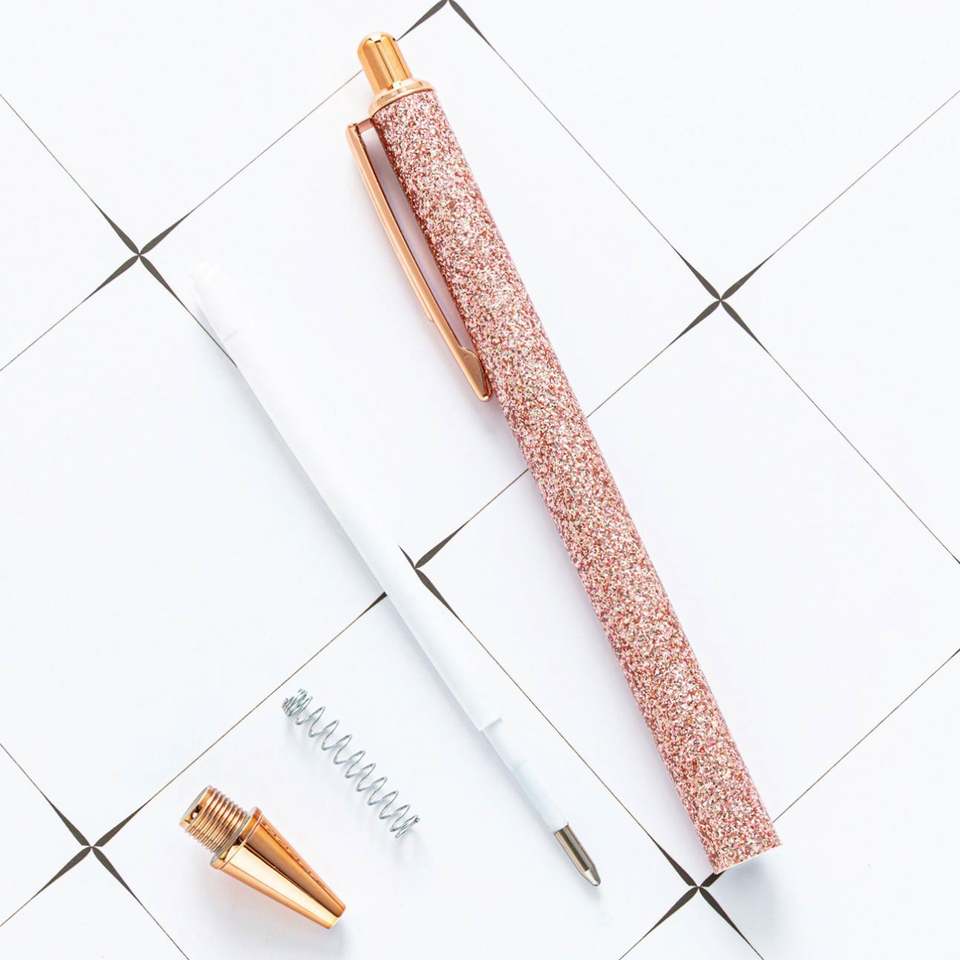 Stylos à bille rétractables personnalisés avec paillettes pour filles et femmes, encre noire, pointe moyenne, cadeaux décoratifs élégants