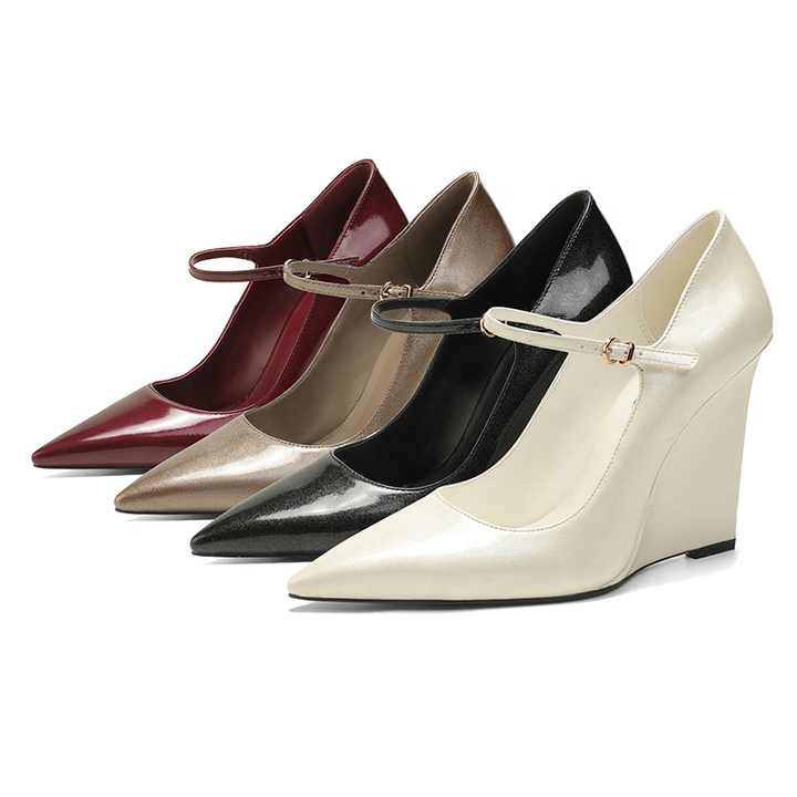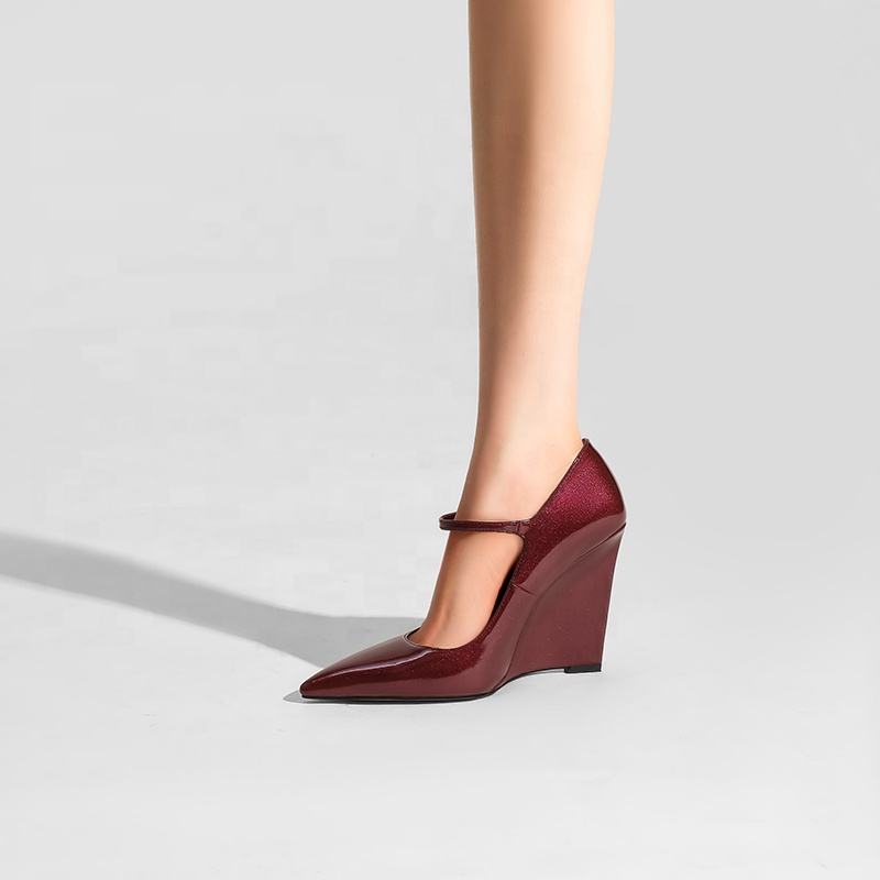 Escarpins Mary Jane à talon compensé de 10,5 cm, à bout pointu, ornés de strass brillants personnalisés, pour femme | Robe tendance et confortable OEM/ODM