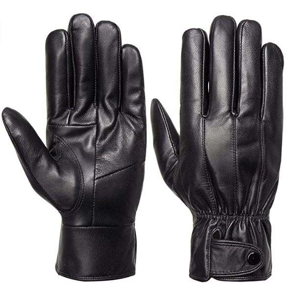 Gants d'hiver en cuir véritable à doigts entiers en peau de mouton à la mode pour hommes et femmes Compatible avec l'écran tactile Sports de fête en plein air