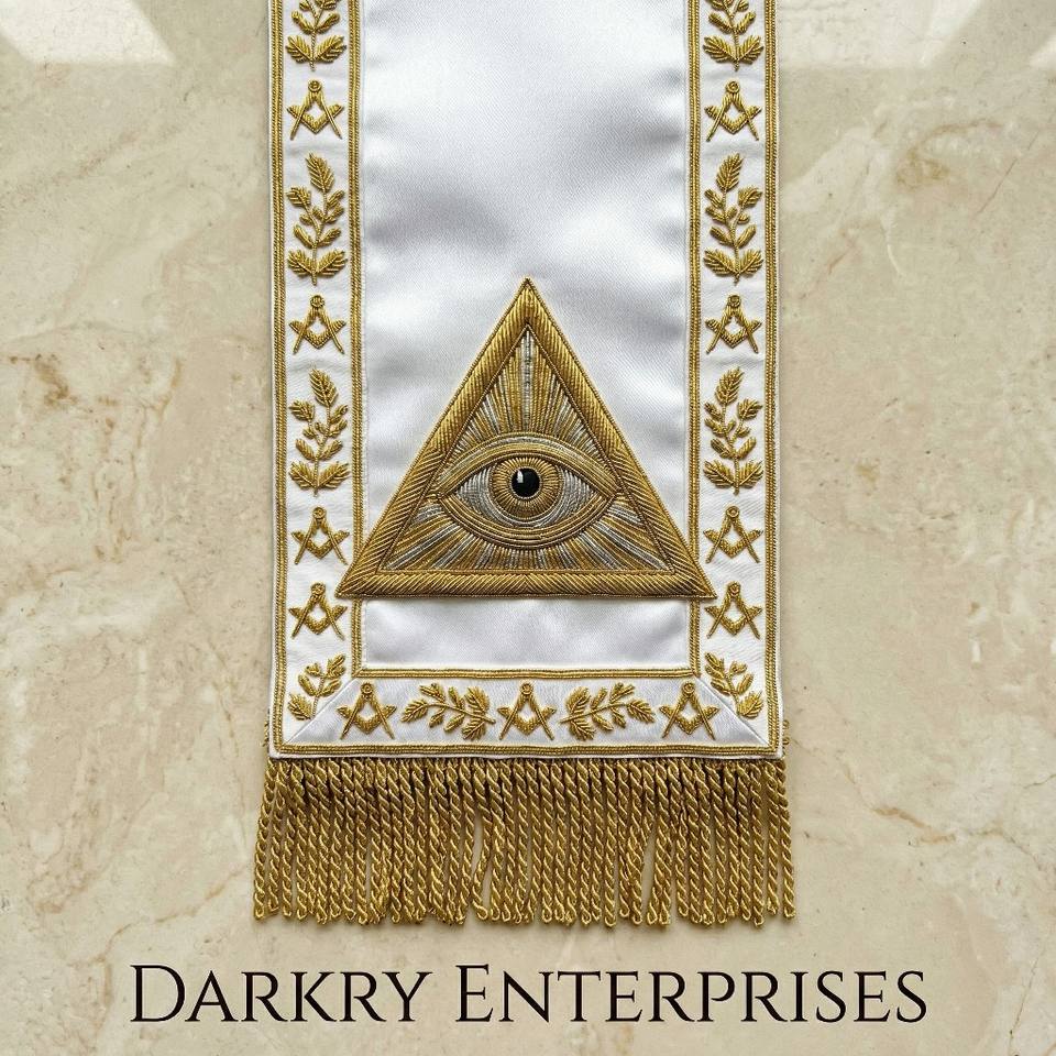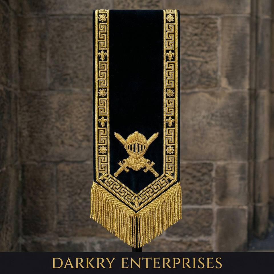 Écharpe de Maître Maçon en Velours Bleu avec Broderie à la Main en Fil d'Or Personnalisé, Emblème Ancre et Feuille de Laurier, pour Régalia Maçonnique