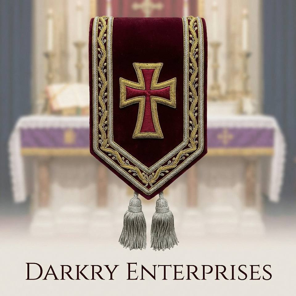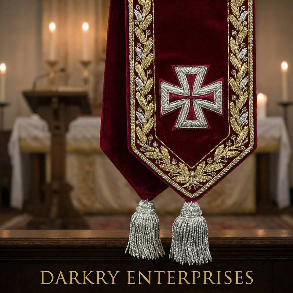 Écharpe de Maître Maçon en Velours Rouge avec Broderie à la Main en Fil d'Or Personnalisé, Emblème Croix et Pompons Argentés – Régalia Maçonnique