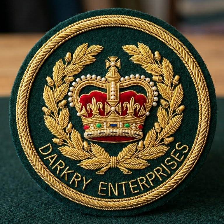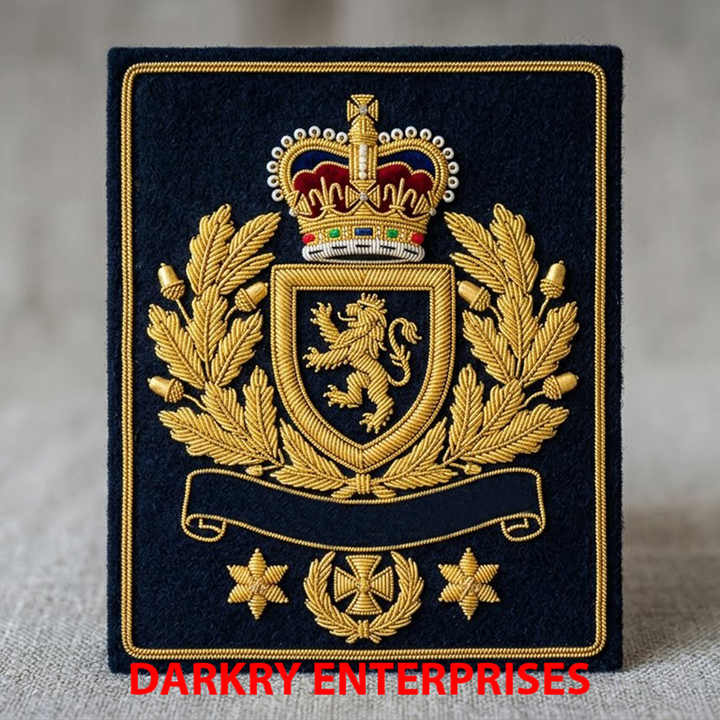 Écusson brodé fait main en fil d'or sur mesure, motif Couronne Lion Bouclier, avec service de texte personnalisé, pour blazer