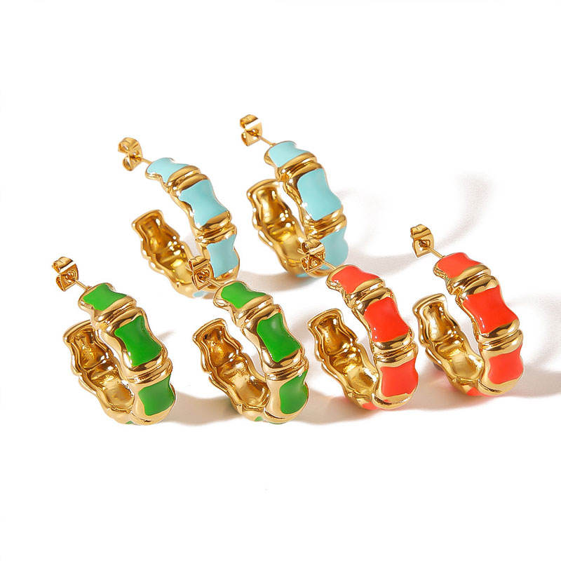 Boucles d'oreilles pour femme en acier inoxydable 316L plaqué or 14k 18k PVD, couleur or personnalisée, motif bambou coloré, tendance.