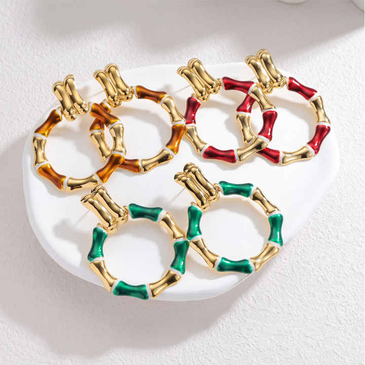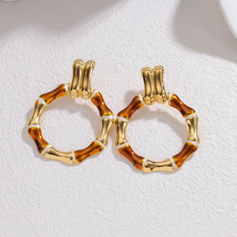 Boucles d'oreilles pour femme en acier inoxydable 316L plaqué or 14k 18k PVD, couleur or personnalisée, motif bambou coloré, tendance.