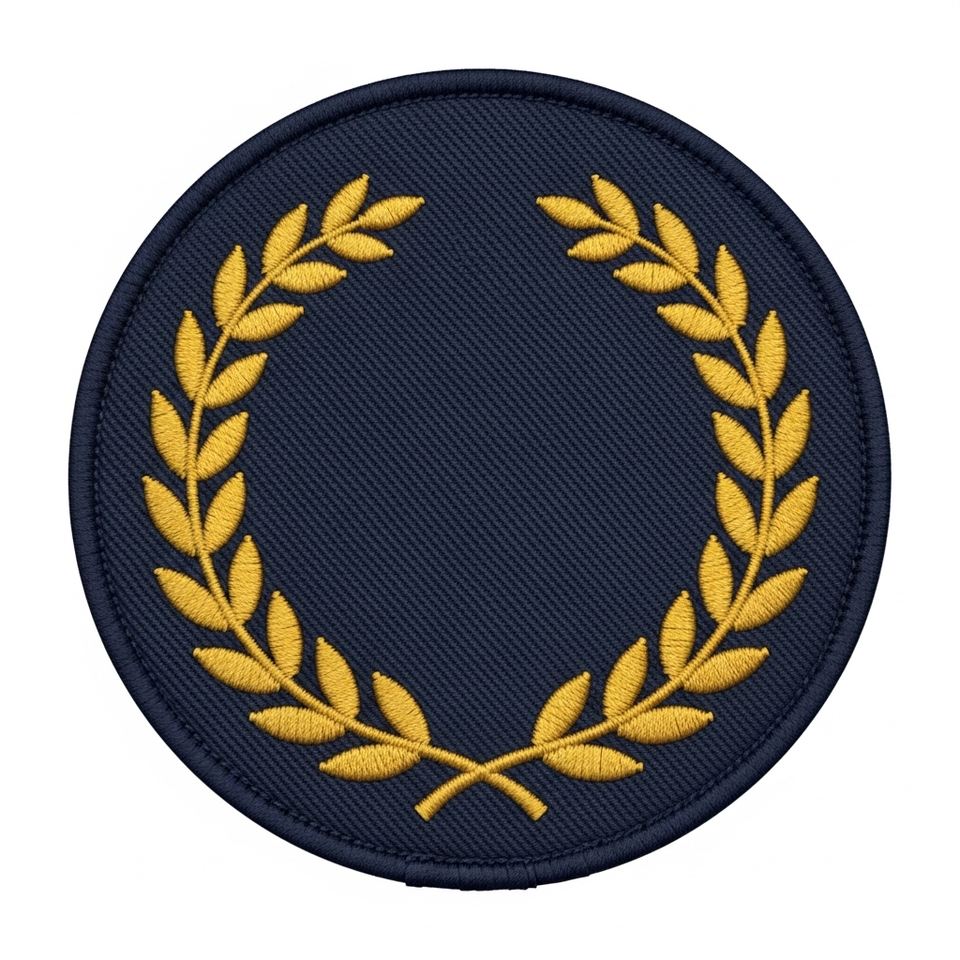Écusson personnalisé brodé or en forme de couronne de lauriers, bleu marine, rond, pour insignes fraternels, blazers et uniformes de cérémonie