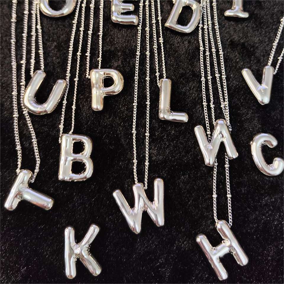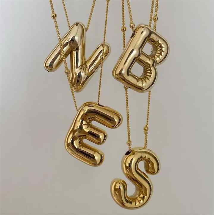 Personnalisé Or Rempli Chunky Bulle Alphabet Lettre Collier Bijoux Personnalisé 3D Ballon Initial Pendentif Collier Pour Les Femmes Gif