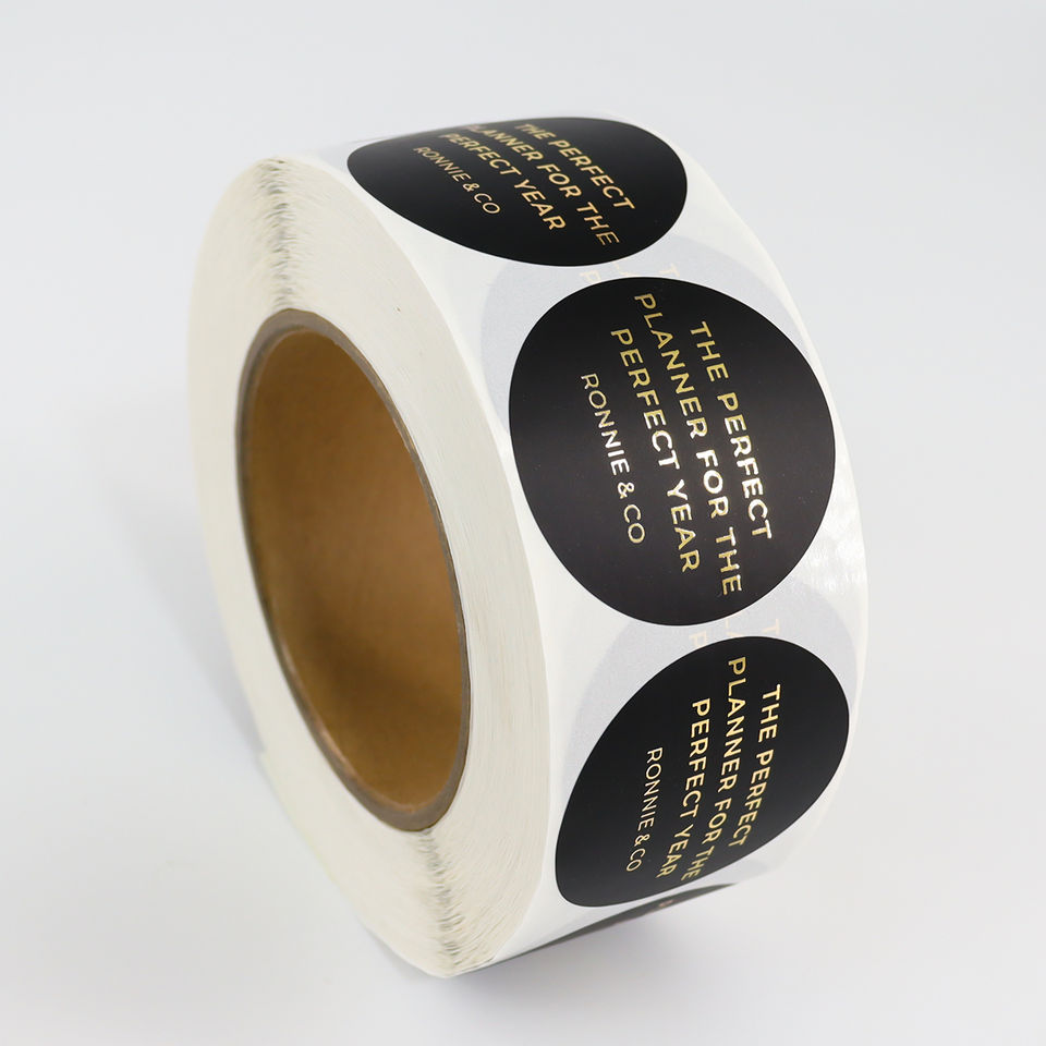 Rouleau d'étiquette à effet mat en feuille d'or personnalisée autocollants ronds en vinyle adhésif étanche