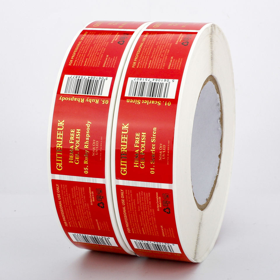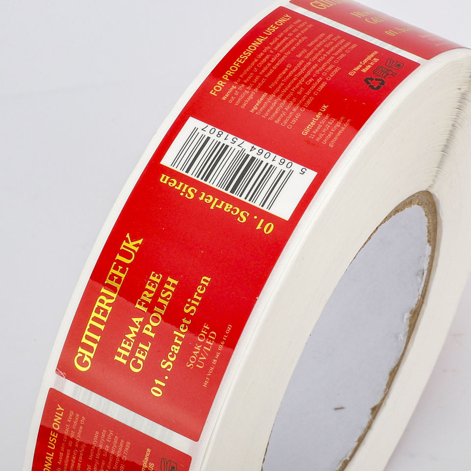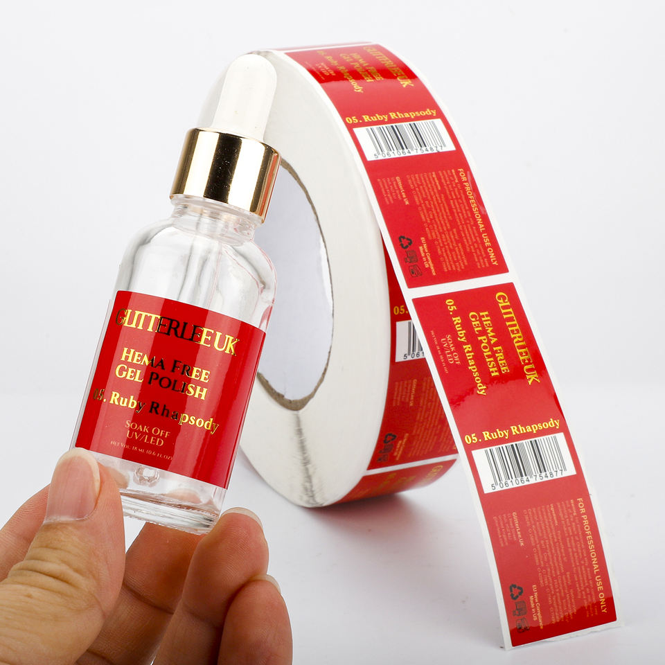 Étiquettes personnalisées en rouleau avec dorure à chaud, autocollants adhésifs en vinyle imperméables imprimés en couleur pour l'emballage de produits de beauté pour ongles et vernis gel