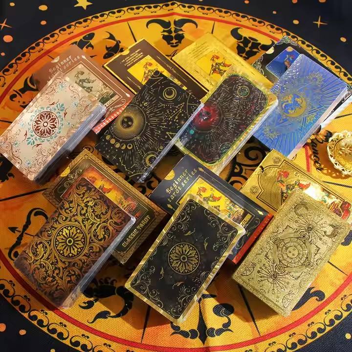 Cartes de jeu de tarot et d'oracle personnalisées en feuille d'or, coins carrés portables, imperméables, en plastique, impression colorée pour jeux de table, carrom