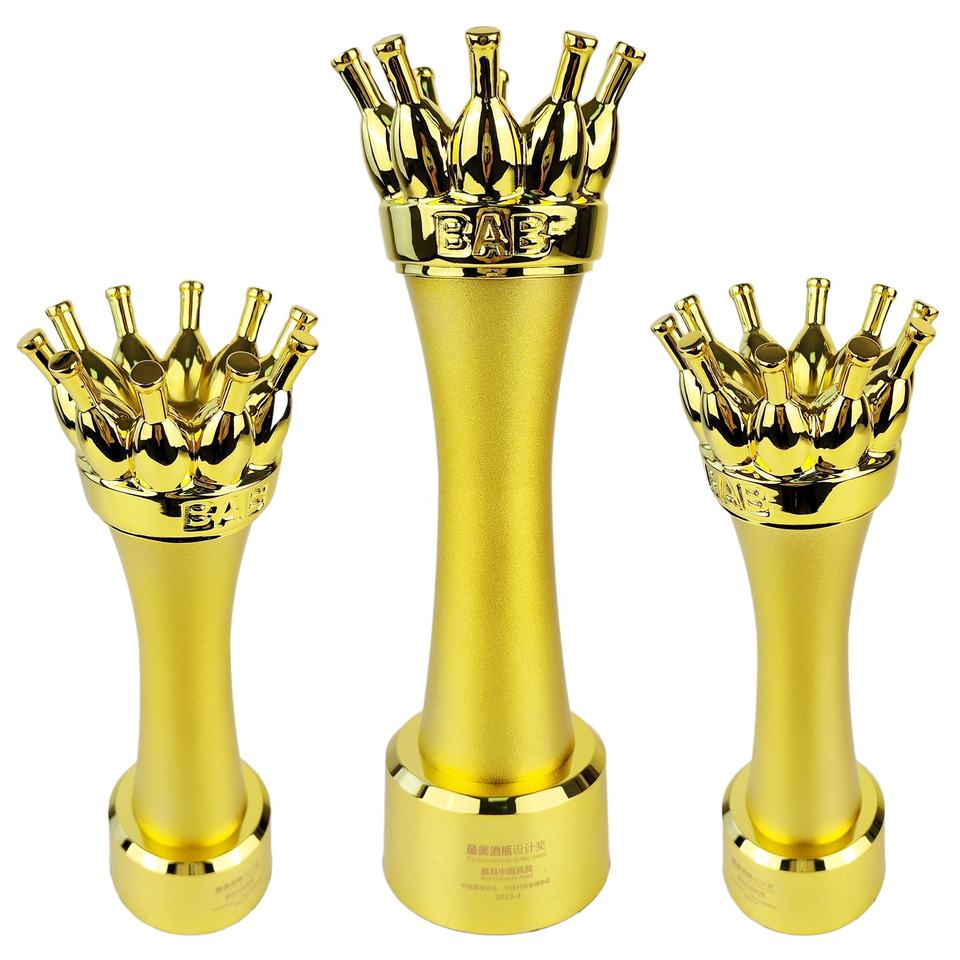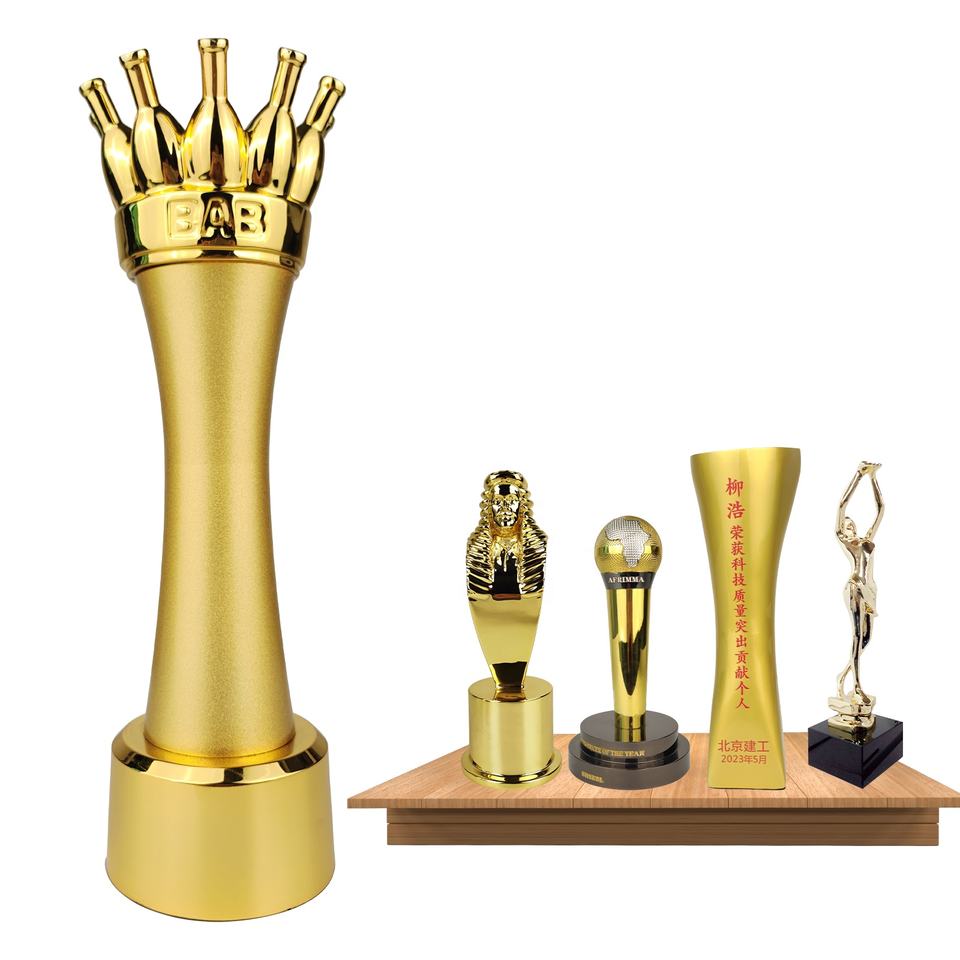 Trophée de victoire du trophée du champion de la couronne royale plaqué or personnalisé pour les événements d'entreprise Coupe commémorative du championnat gravée au laser