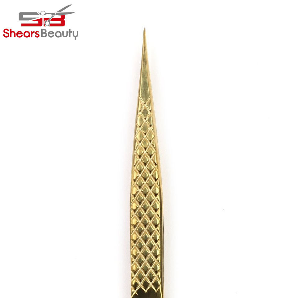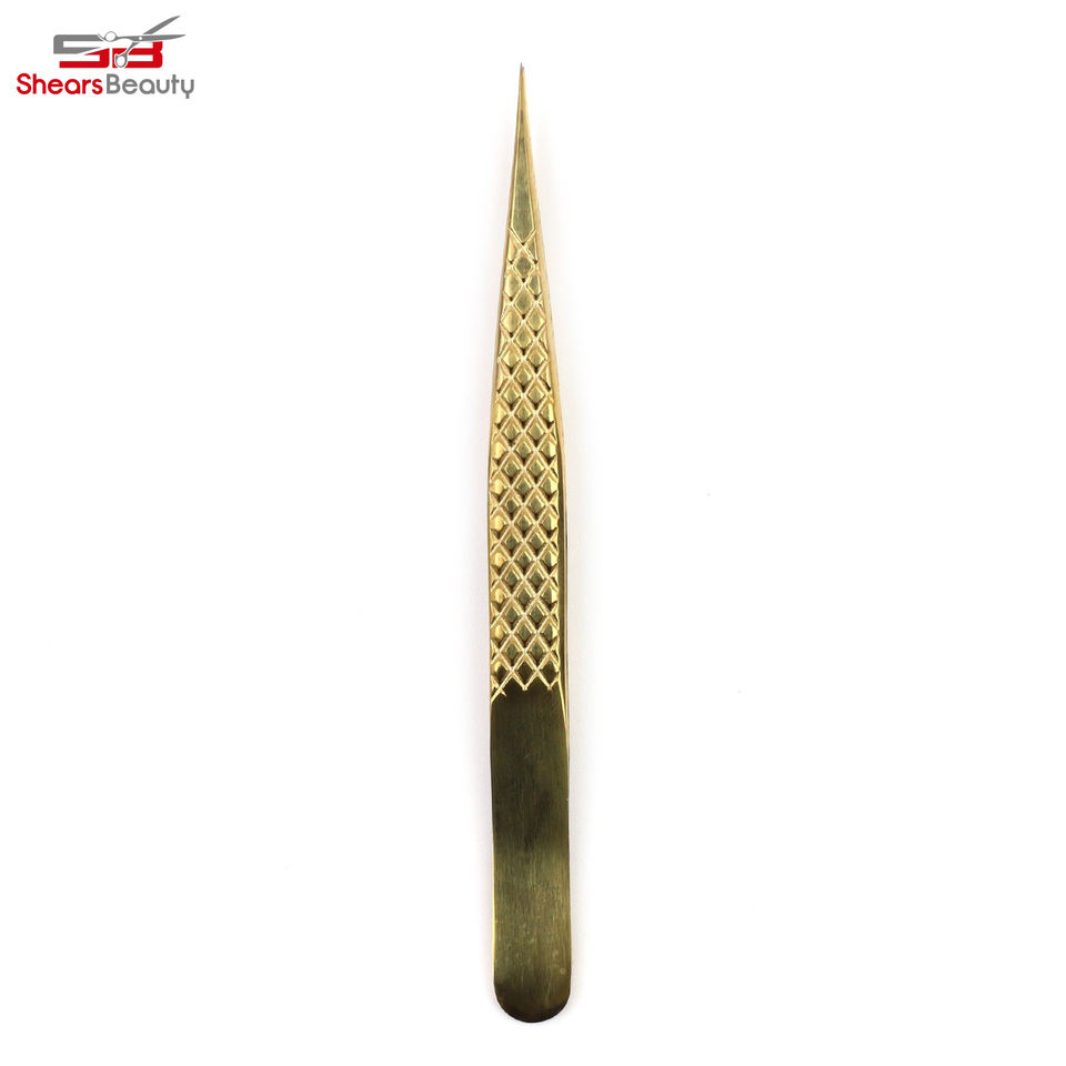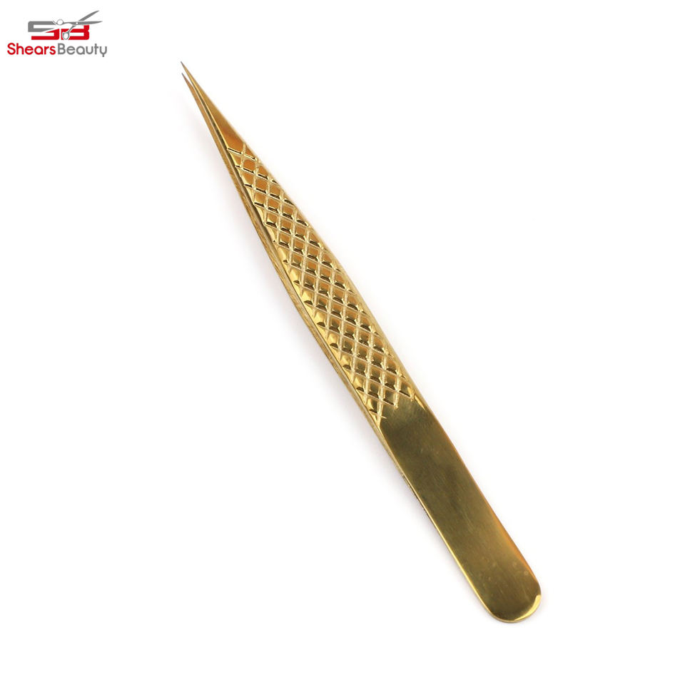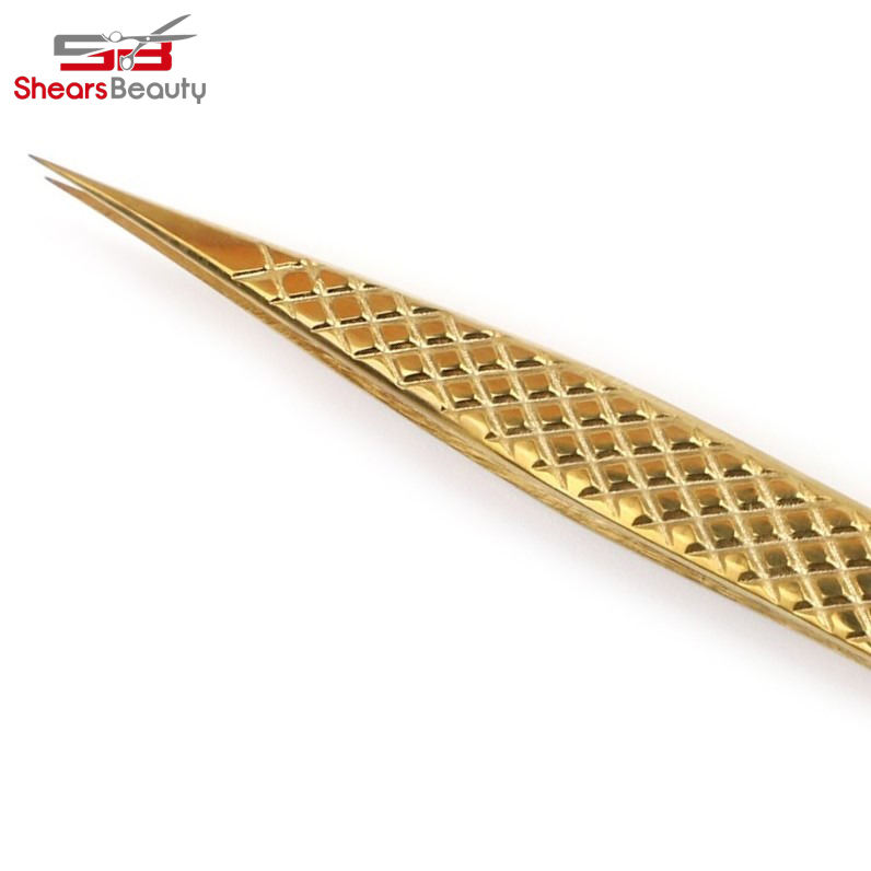 Pince à cils professionnelle en or personnalisée, pointe fine, en acier inoxydable, haute qualité, emballage personnalisable