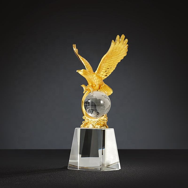 Nom du produit:Trophée Aigle en Métal Doré Personnalisé avec Base en Cristal