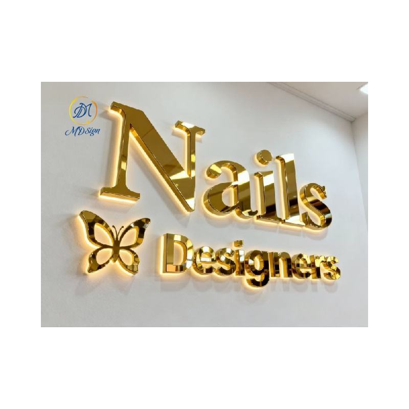 Lettres lumineuses LED 3D personnalisées en miroir doré, logo personnalisé, enseigne LED pour la signalisation des entreprises et des magasins