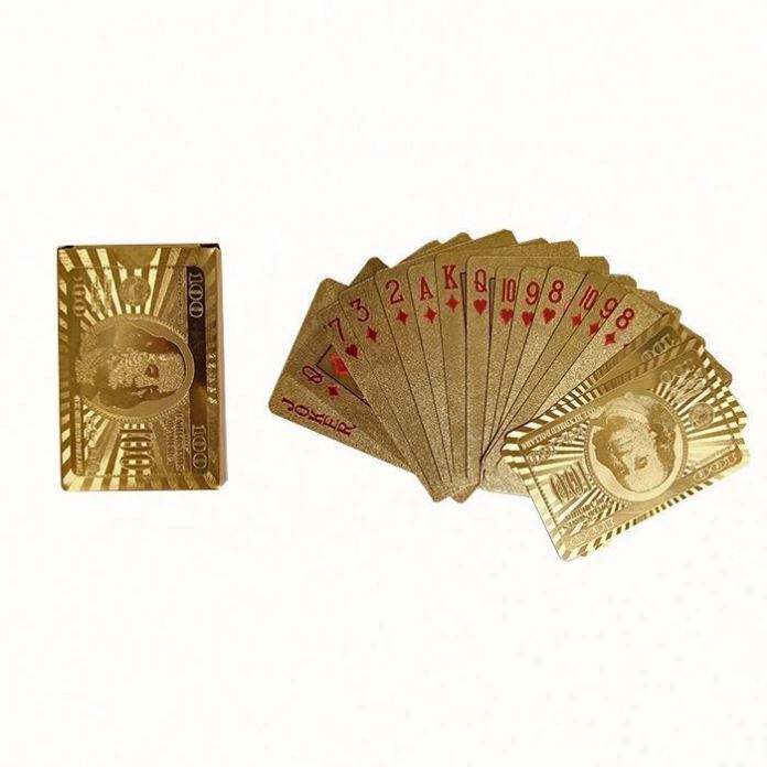 Jeu de cartes de poker personnalisé en or de haute qualité, cartes à jouer plaquées or imperméables
