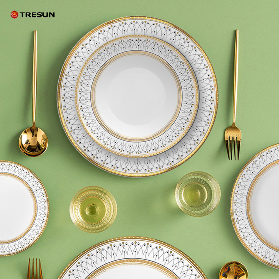 Assiette à bordure dorée personnalisée Assiette en forme de tournesol Chargeur en céramique Vaisselle en porcelaine de luxe