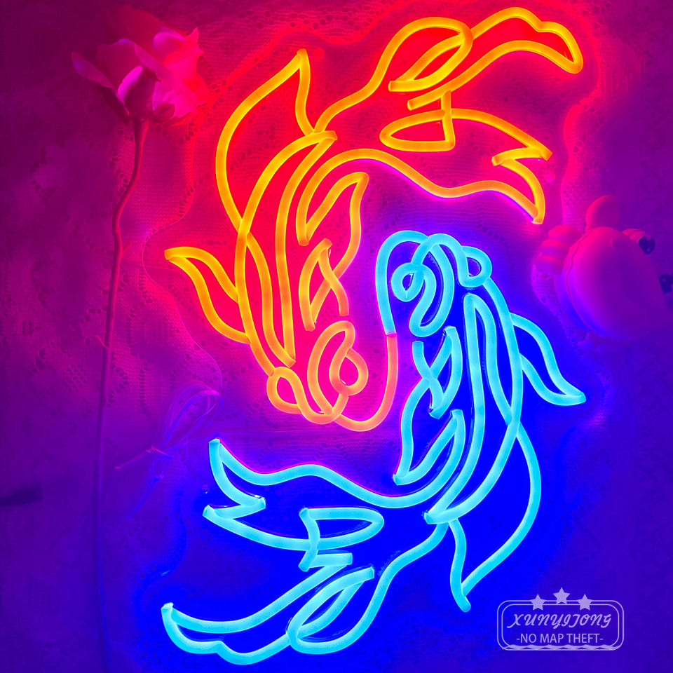 Enseigne au néon personnalisée de poisson rouge élégante et colorée pour décor d'aquarium de salle de restaurant Lampe au néon alimentée par courant alternatif pour application d'entreprise