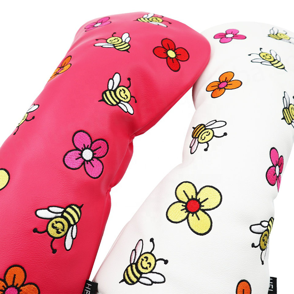 Couvre-tête de golf personnalisé imprimé fleurs et broderie d'abeille cuir PU conducteur bois couvre-club de golf couvre-chef de club de golf