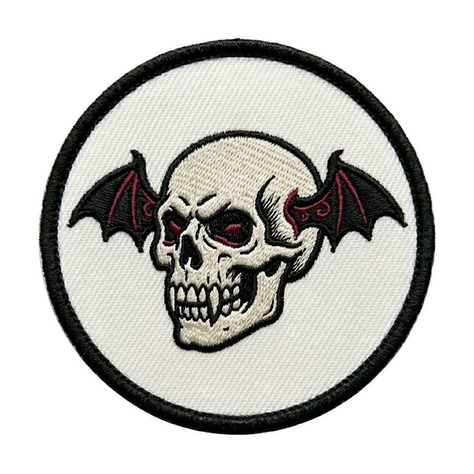 Patch brodé personnalisé Goth Crâne Ailes de chauve-souris, badge thermocollant rond pour veste de motard, vêtements rock, fourniture en gros DIY