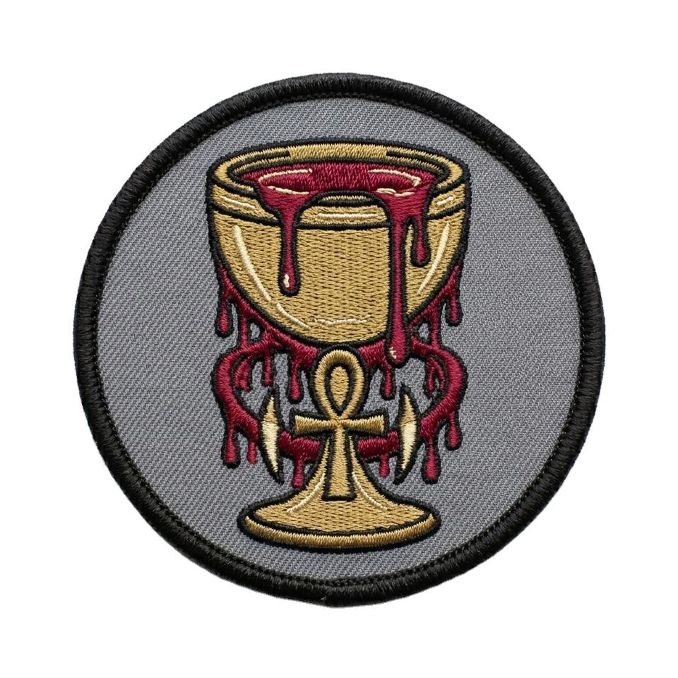 Patch brodé personnalisé Chalice Gothique Ankh, badge thermocollant rond pour vêtements de vampire, veste, bricolage, vente en gros, fabricant