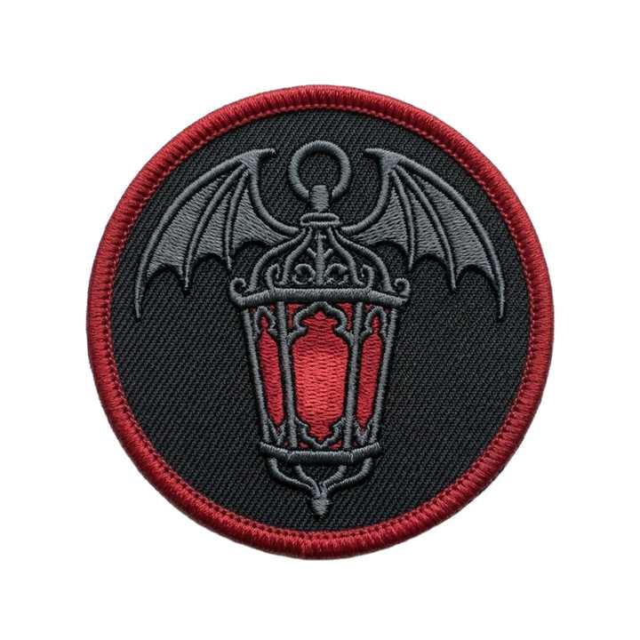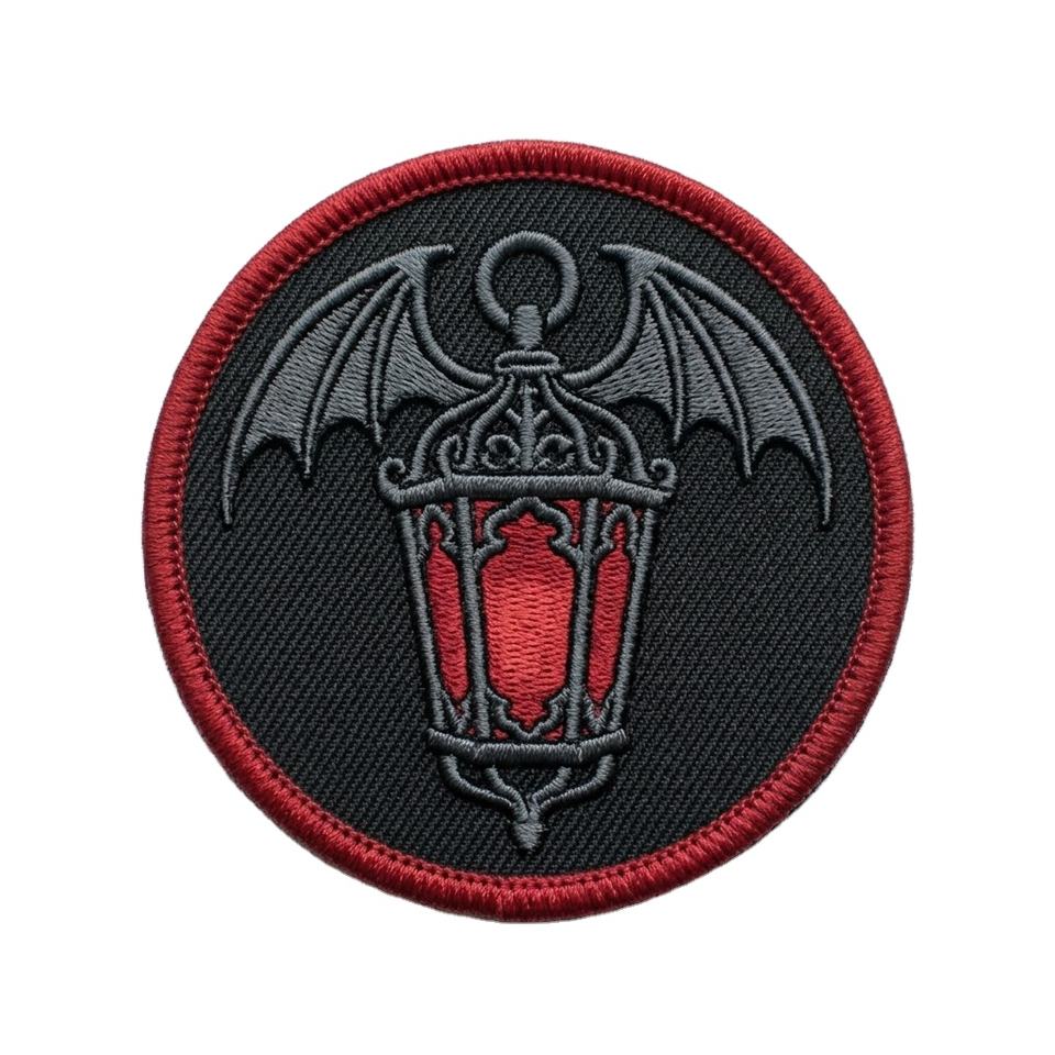 Patch thermocollant rond brodé personnalisé, motif lanterne gothique ailée, lampe vampire, pour vestes et sacs, fabricant en gros