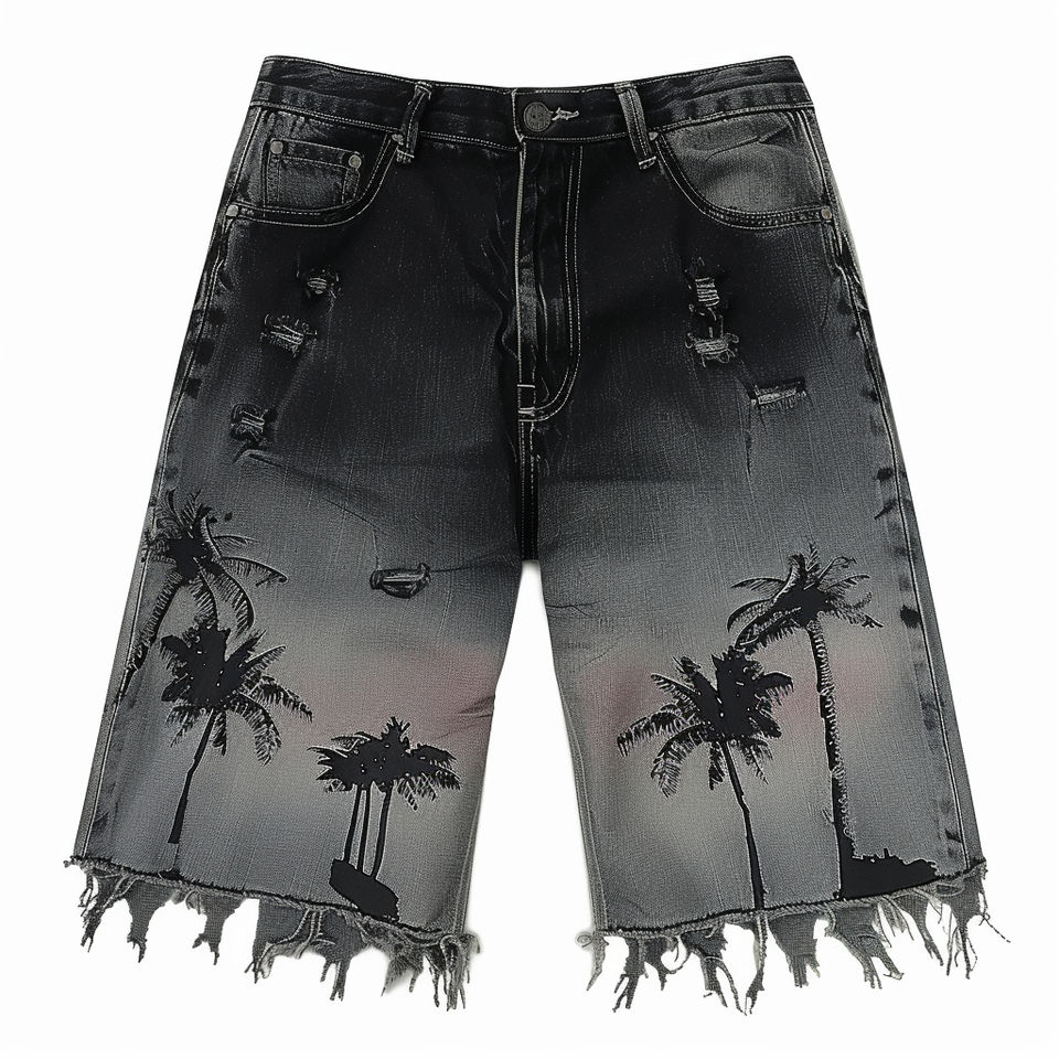 Short en jean avec ourlet brut de teinture dégradée personnalisé pour hommes Baggy Distressed Design Maple Leaves Made Pakistan Taille 6XL Fitness/Casual Mesh