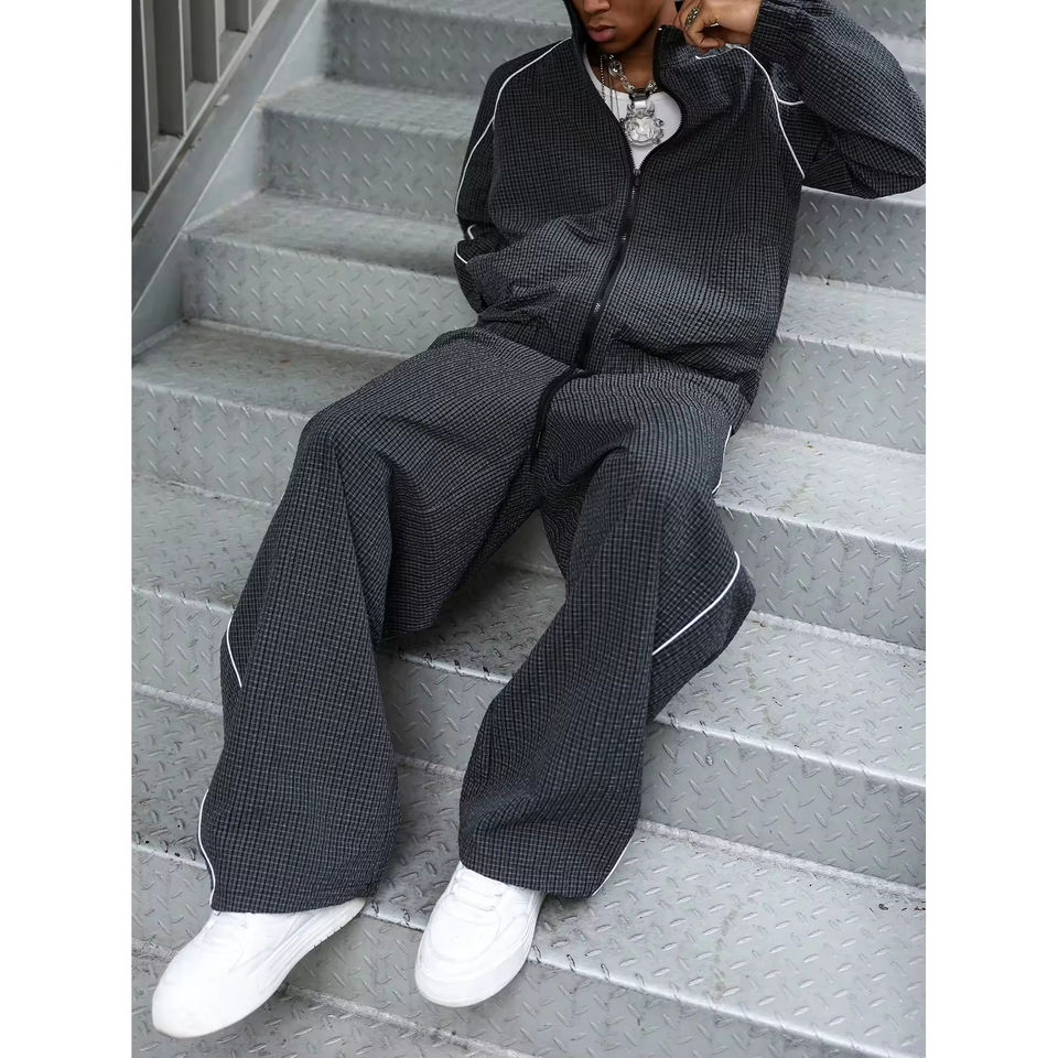 Survêtements unisexes en molleton respirant avec logo imprimé par transfert thermique style graffiti personnalisé, pantalons évasés superposés et sweat-shirts pour hommes