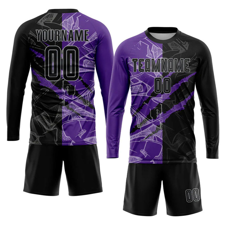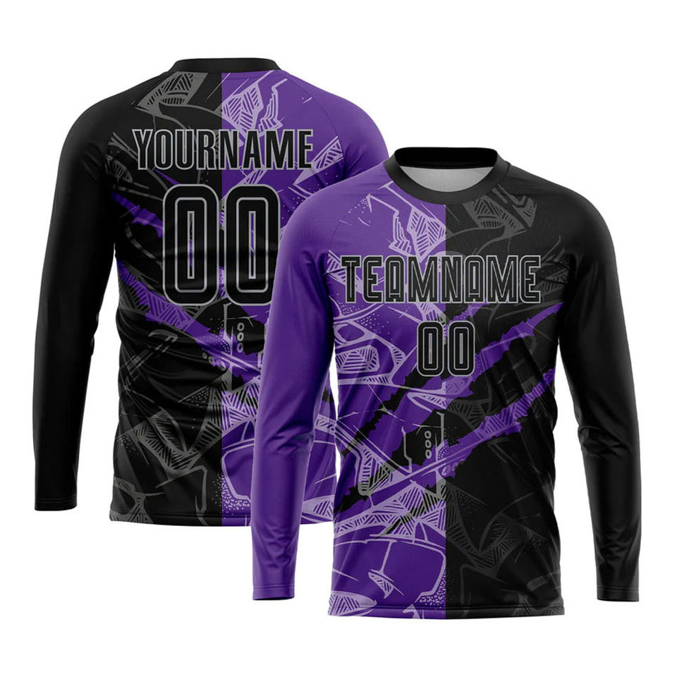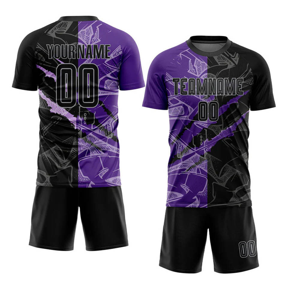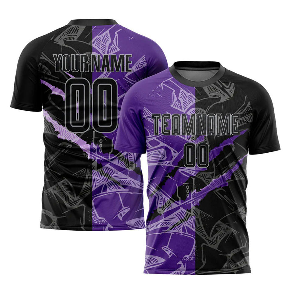 Maillot de football personnalisé à motif graffiti noir, violet-gris, imprimé par transfert thermique, avec logo personnalisé, nom de l'équipe - OEM