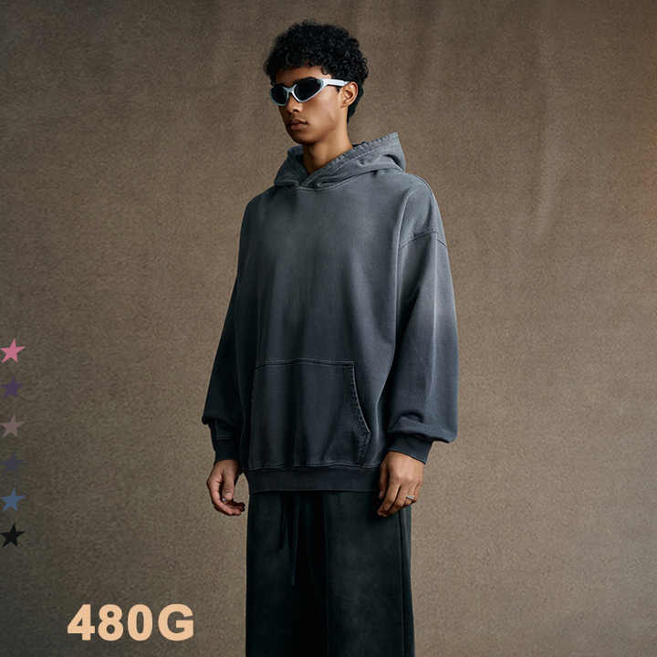 Sweat à capuche oversize streetwear personnalisé de haute qualité, 100% coton, effet vintage délavé à l'acide, poches, taille XXS