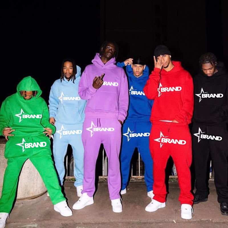 Ensemble de Survêtement Homme Personnalisé avec Logo en Sérigraphie Gonflante, Hoodie et Pantalon de Jogging pour le Sport, le Fitness et le Streetwear à Cordon de Serrage