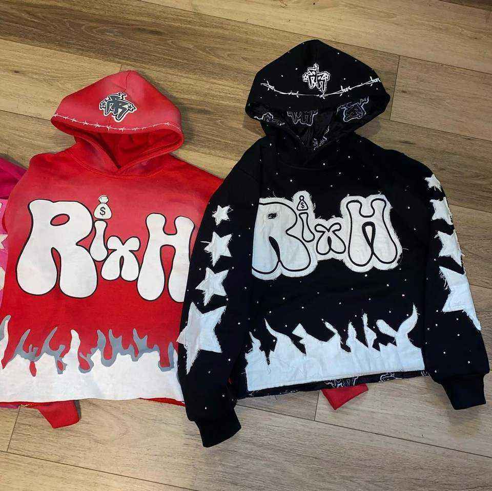 RixH Graphique Personnalisé Imprimé Flamme Étoile Design Brodé Streetwear Hoodies pour Hommes/Femmes Plusieurs Couleurs Pull Sweatshirts