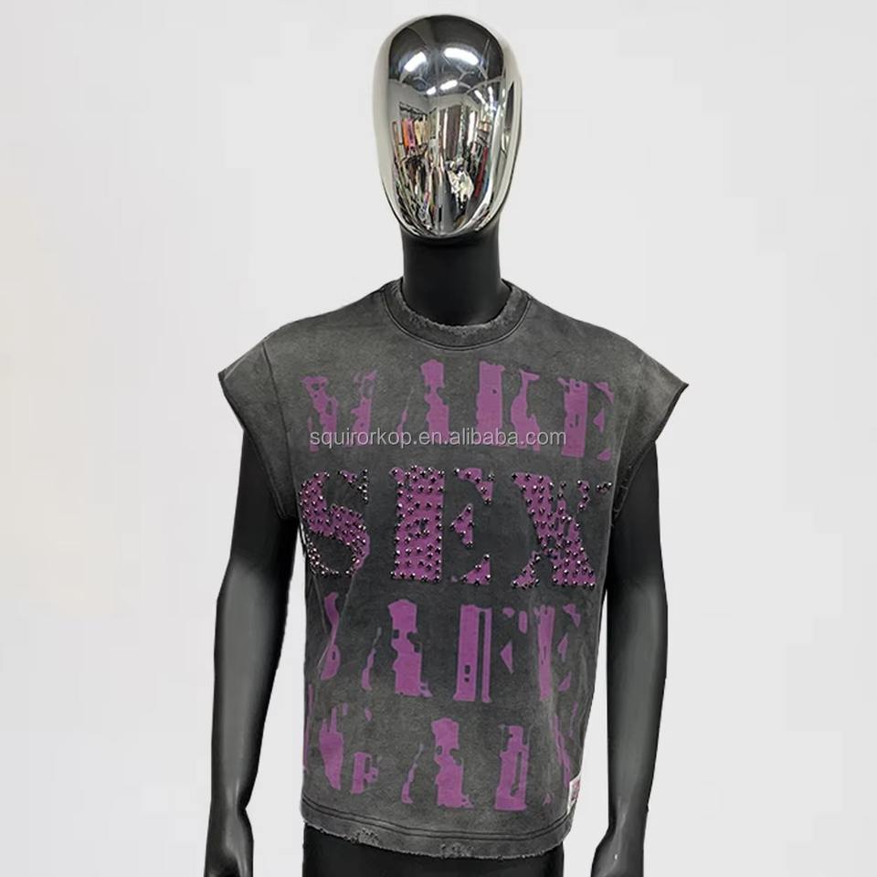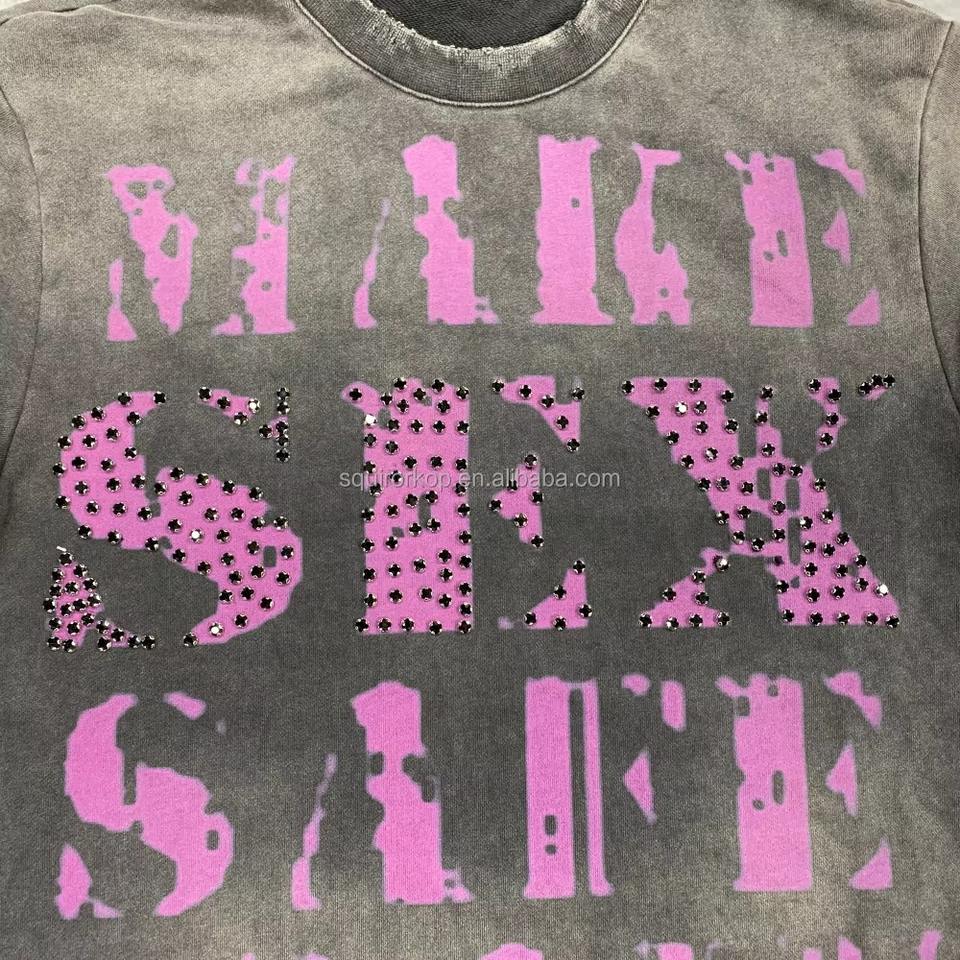 T-shirts graphiques personnalisés, T-shirt streetwear oversize avec strass, T-shirt en coton délavé à l'acide, T-shirt boxy pour hommes, fabricant